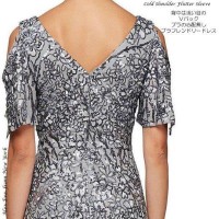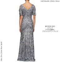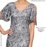 特徴など | 個性的なデザインカットされた肩と切れ込みの入ったひらひらとした袖 コールドカットショルダーと言います エンブロイダリーレースにシルバースパンコール加工がキラキラ 眩しいばかりの美しさとスラッとしたトランペットライン 少し深めのVネックで上品でちょっとセクシーな イブニングドレス&マザーオフブライドドレスですね! 背中もVバックですが通常のブラで対応出来ます。 内蔵ブラパッド無し 後ろジッパー 裾回り1.9メートル |