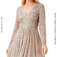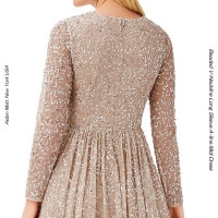 トップ > ミディードレス > ビジュエンブロイダリーメッシュ ミディドレス ティーレングス スパンコール ビーズ シャンペン色 シルバー インポートドレス大阪 ニューヨークブランド 袖付きドレス Aラインドレス 演奏会用ドレス ピアノ演奏会