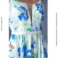ボリュームを出し過ぎないように配慮されています 結果このような美しいAラインに仕上がっています ウエストは2センチ巾のオフホワイトフィックスベルトで ウエスト細見せ効果あり スカート両サイドには便利なポケット付き 背中はウエストの上ぐらいまでしっかりデコルテ見せ バックレスビスチェとかヌーブラでの対応か パッドは入っていますがダブルでパッドを追加で付ける? 肩紐は8ミリ幅の片方2本づつ プリントサテンのダブルストラップ 花柄が連続してとても可愛いですね! 内蔵ブラパッド付き 後ろジッパー なぜかオフホワイトのチュールショール付き 190*45センチ |