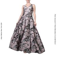 非常に珍しいタイプのジャガード生地 写真で見えるブラック部分はブラックのメッシュ生地が 透けていて裏カットジャガードとでも言えばいいのか? 凄く立体感のある奥行きの深さを感じさせる生地で尚且つ豪華! シルエットはVネックライン&Vバックネックラインで少しハイウエストぎみのAラインボールガウン トップ部分はプリンセスシーム風のテーラリングが活かされ スカート部はボックスプリーツ6カ所で 最適なボリュームを造り出しています 裏地はウーブン生地(織生地)では珍しく 少しストレッチ性を持たせています 微妙に着心地を浴してくれるんですね! 蹴回しは3.1メートル 内蔵ブラパッド無し 後ろジッパー |