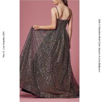 ブラックベースにゴールデンオーロラの スパンコールをびっしりと刺繍した ブラック系なのにとても華やかな Vネック・ディーププランジネックラインの スパゲッティストラップAラインボールガウン ライトが当たりあなたが動くとキラキラが 凄いことになります 写真では表現できない素晴らしさがあります 見栄えの割にはリーズナブルなコスパ・グッドの 高評価ドレスですね! 蹴回し 5.4メートルとたっぷり ヘムには8センチ巾のホースヘヤーテープ付き テープは基本的に良いとは思いませんが この生地にはとても合うと思います 内蔵ブラパッド付 後ろジッパー 小さなサイズSから2XLまで入荷しましたが 残りはXL(T12)のみ・・早かったですね 来月をめどに追加予定です